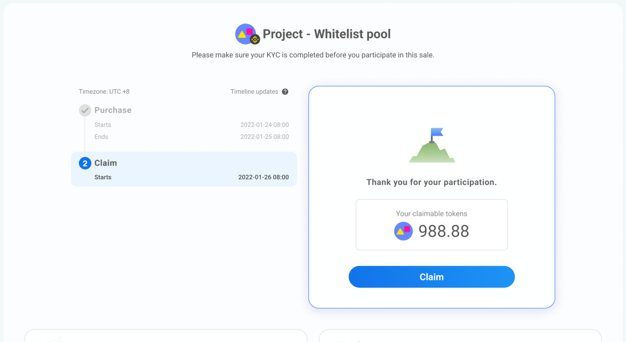 Once the Purchase Period starts, you will be able to see a Sale card specifically for Whitelist allocation winners on the IDO project.